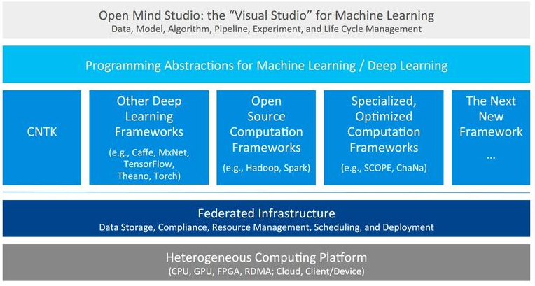 Qi Lu (the Vice President of Applications and Services at Microsoft) recently gave a presentation at Stanford’s Scaled Machine Learning Conference. The most surprising part of the whole deal is that all of Microsoft’s exciting machine learning initiatives are small boxes in the slide while there is something completely new called the Open Mind Studio on top. If you see the link between the different objects in the slide, it is easy to interpret it as something that brings everything else together.