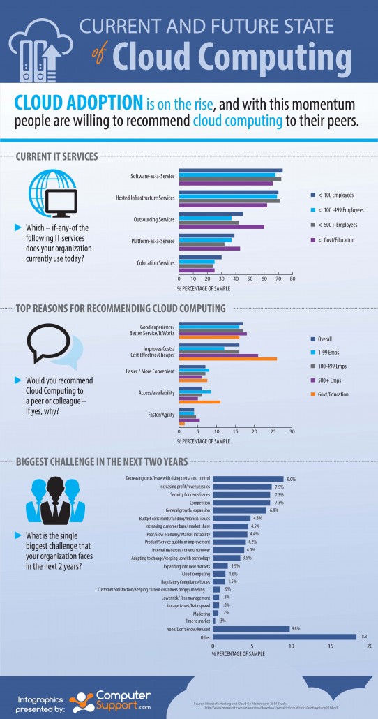 As cloud computing continues to drive technology in business, the relationship between cost, service, and adoption will likely be mentioned again. Click on the below infographic to learn more about the current and future state of cloud computing.